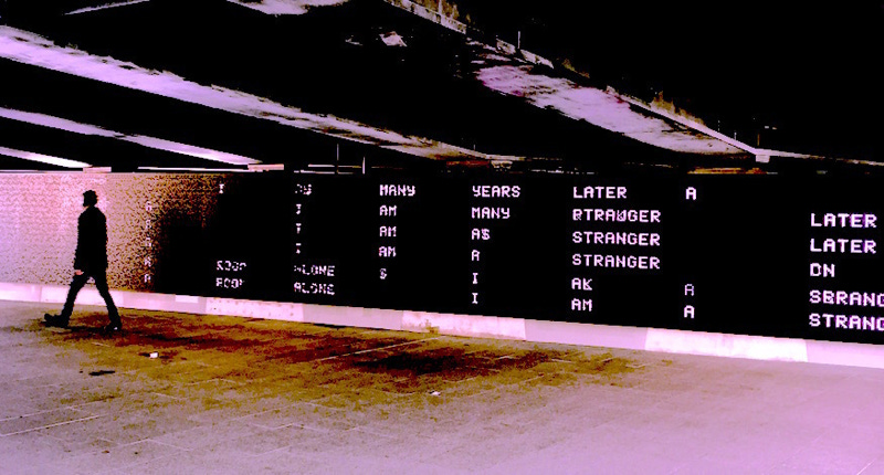 The piece below, which can be found under the Bishop’s Bridge Road flyover, commemorates Alan Turing. It was curated by Futurecity and devised by United Visual Artists, in collaboration with Hackney-based poet Nick Drake.